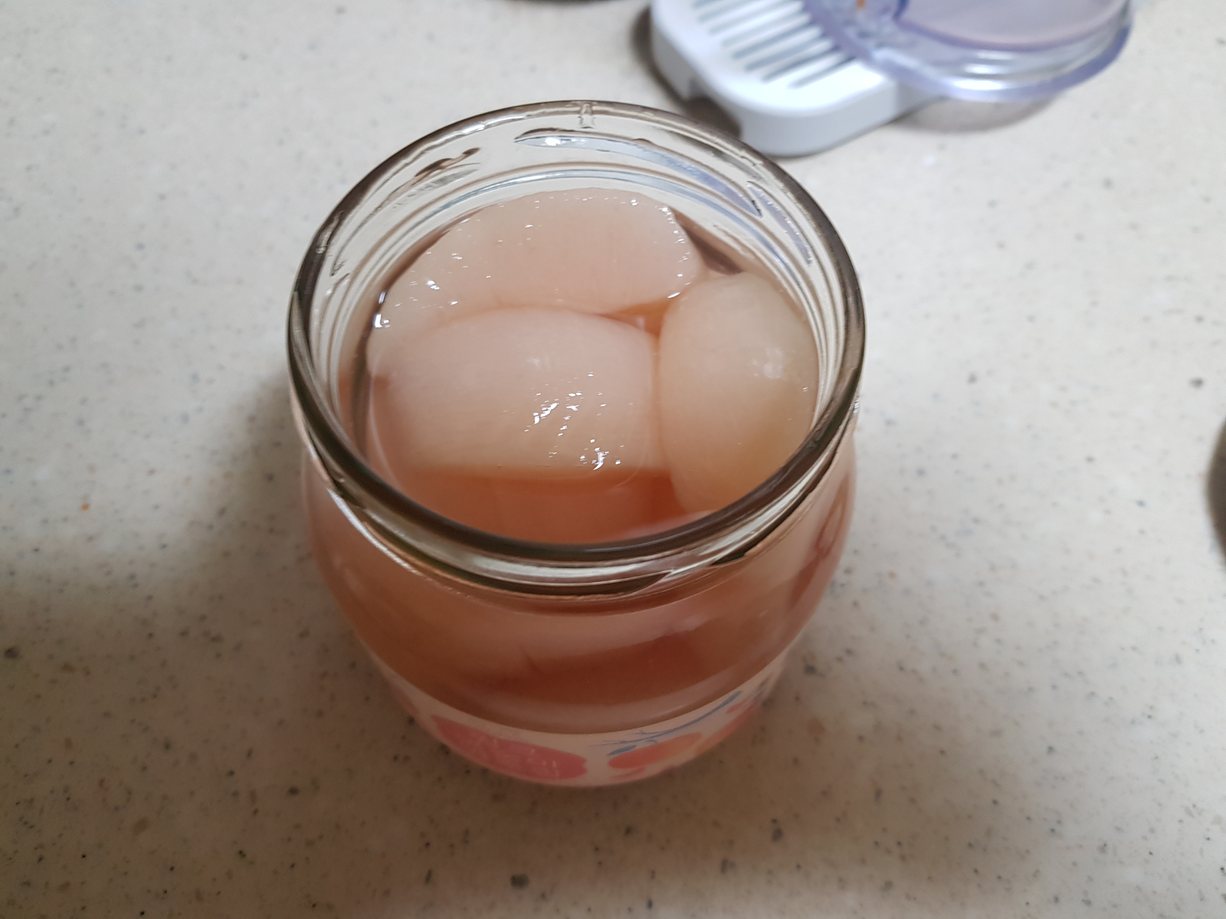 오늘은 집에 있는 복숭아 유리병조림을 먹으려고 했는데